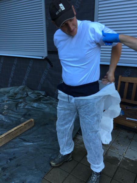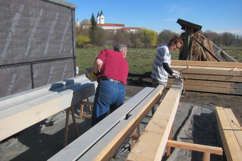 2016-03-19-Streichen des Dachstuhls Teil 1