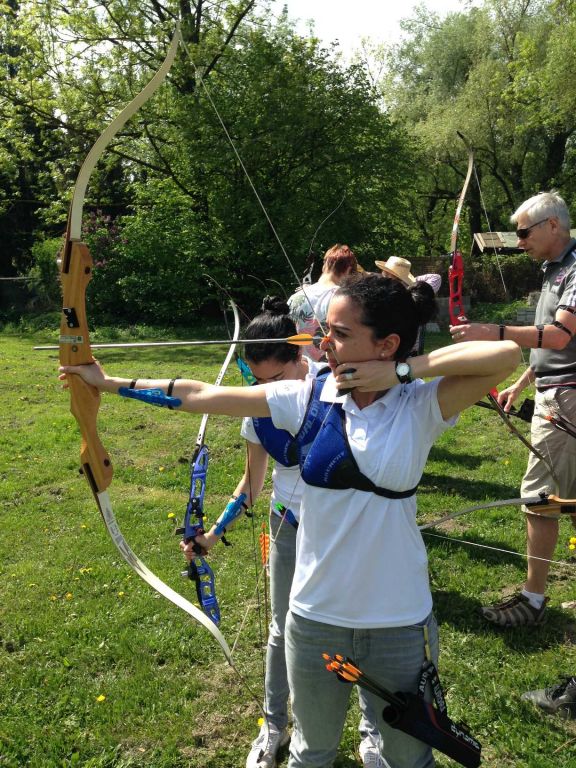 Nach einem intensiven theoretischen Eingangsvortag über den Blankbogen, seine Regeln und wie man ihn schiesst, gab es einen Praxisteil. Dabei wurde das Stringwalking auf kurze Distanz von 5 Metern geübt. Für einige der Teilnehmer waren das die ersten Schüsse mit Untergriff und Abgreifen. Nach wenigen Passen sahen die Ergebnisse auf der Scheibe schon sehr passabel aus.