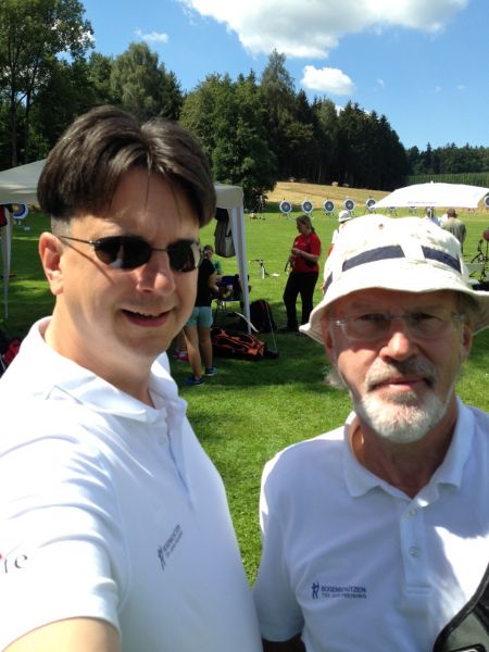 "Im vergangenen Jahr war unser Verein mit etlichen Schützen und insbesondere vielen Anfängern (!), auf diesem sommerlichen Turnier in der Hallertau, vertreten. Heute war die Zahl unserer anwesenden Schützen auf Kurt und den Verfasser beschränkt. Dafür trugen wir aber beide unsere neuen Vereinsshirts zur Schau :)
